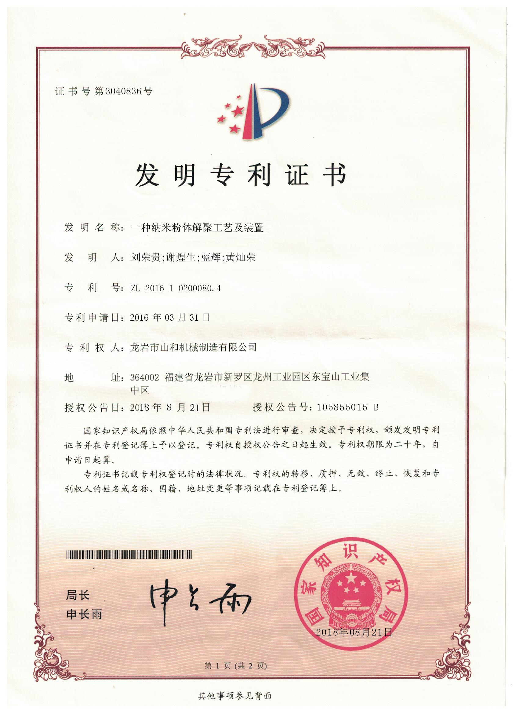 一種(zhong)納米粉體(tǐ)解聚工藝(yì)及裝置